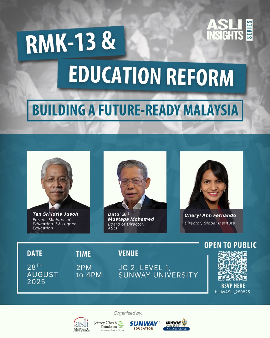 This event is part of the ASLI Insights Series by the Asian Strategy & Leadership Institute (ASLI), a platform for thought-provoking discussions that shape Malaysia’s policy future.
